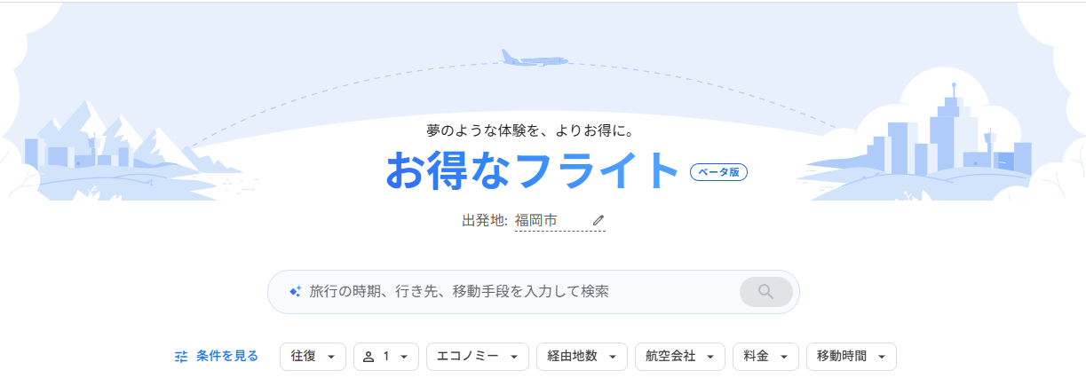 そこで注目したいのが、Google FlightsのAI搭載機能です。