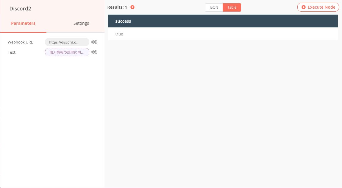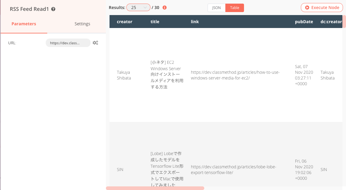 Excute Nodeボタンをクリックし、情報が取得出来るか確認