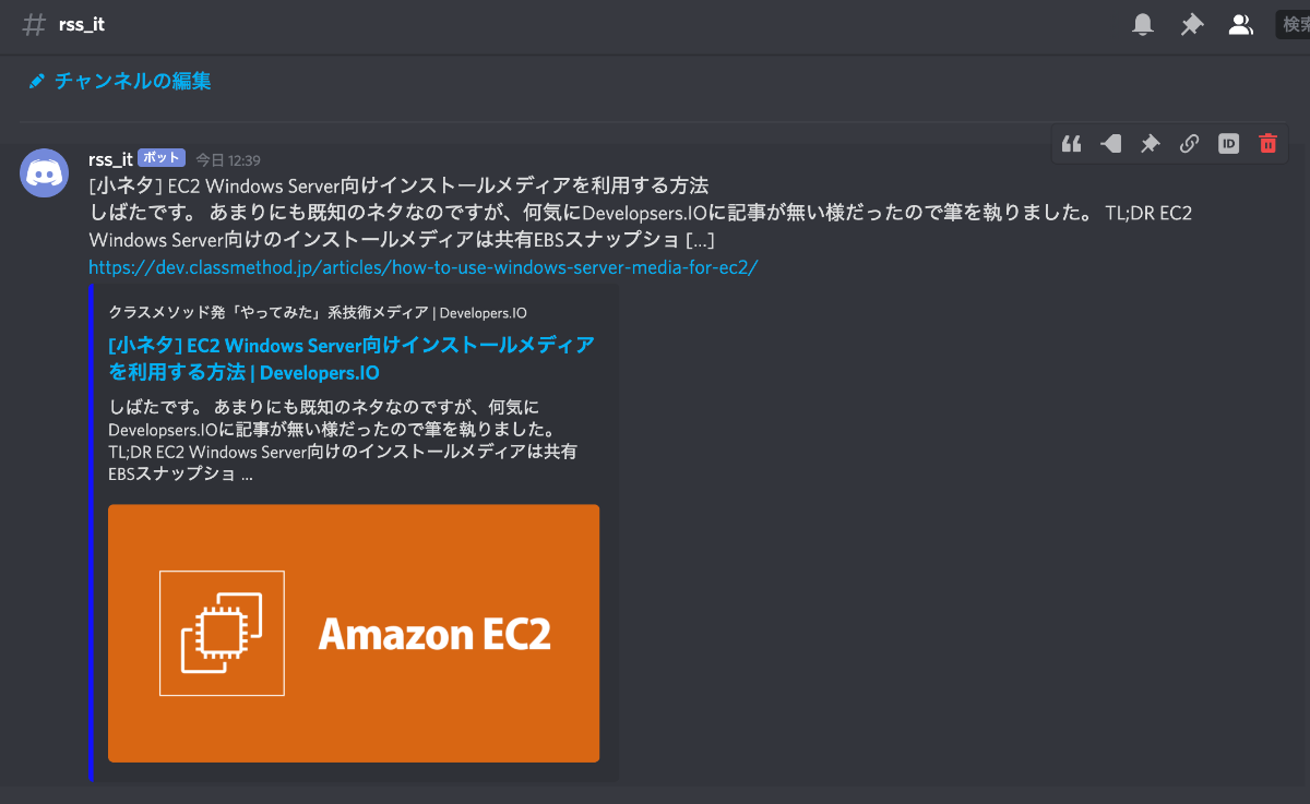 DiscordのチャンネルへRSS情報を通知するために、