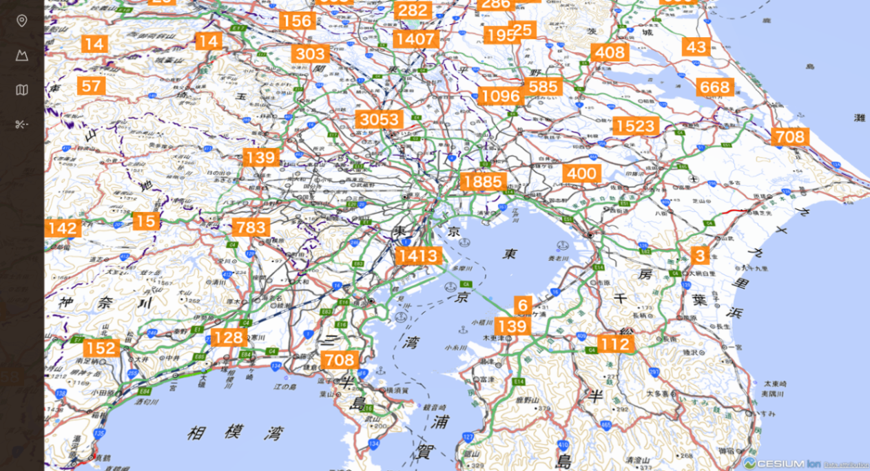 | 4-6 | クラスタマーカー | タイル内のボーリングを集約し、件数を表示 |