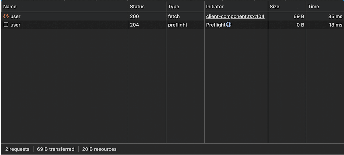 PATCHを実行した時のみ、preflight requestのOPTIONSが飛んでいることがわかります。