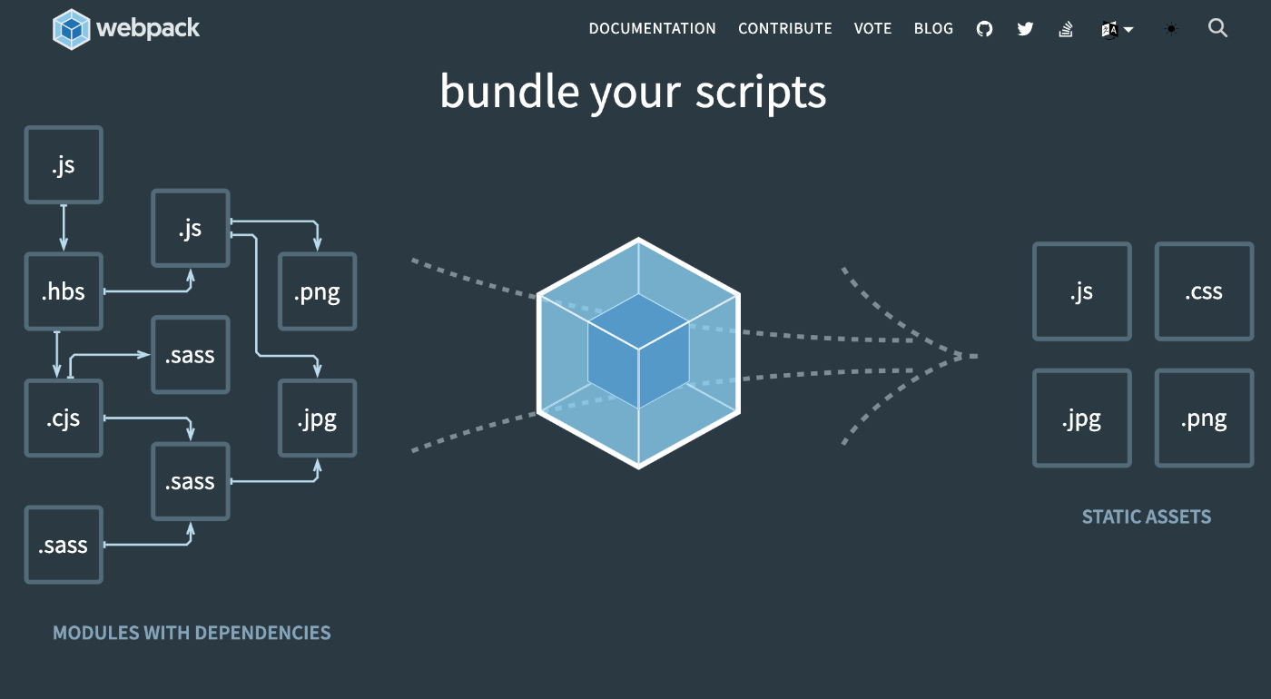 webpackとは、JavaScriptモジュールを一つまたは複数の指定したファイルにバンドル(束ねる)してくれるツールです。