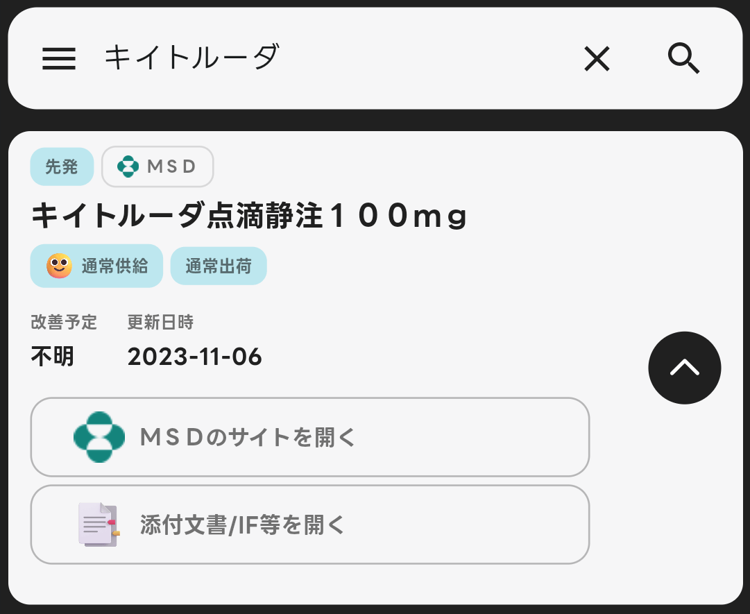 もちろん添付文書やIF、メーカーHPなど基本情報にも最速アクセス