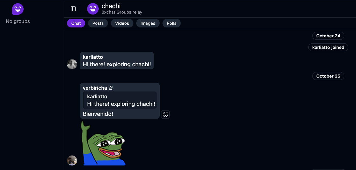 Chachi ChatはNIP-29 (Relay-based Groups)によるグループチャットができます。