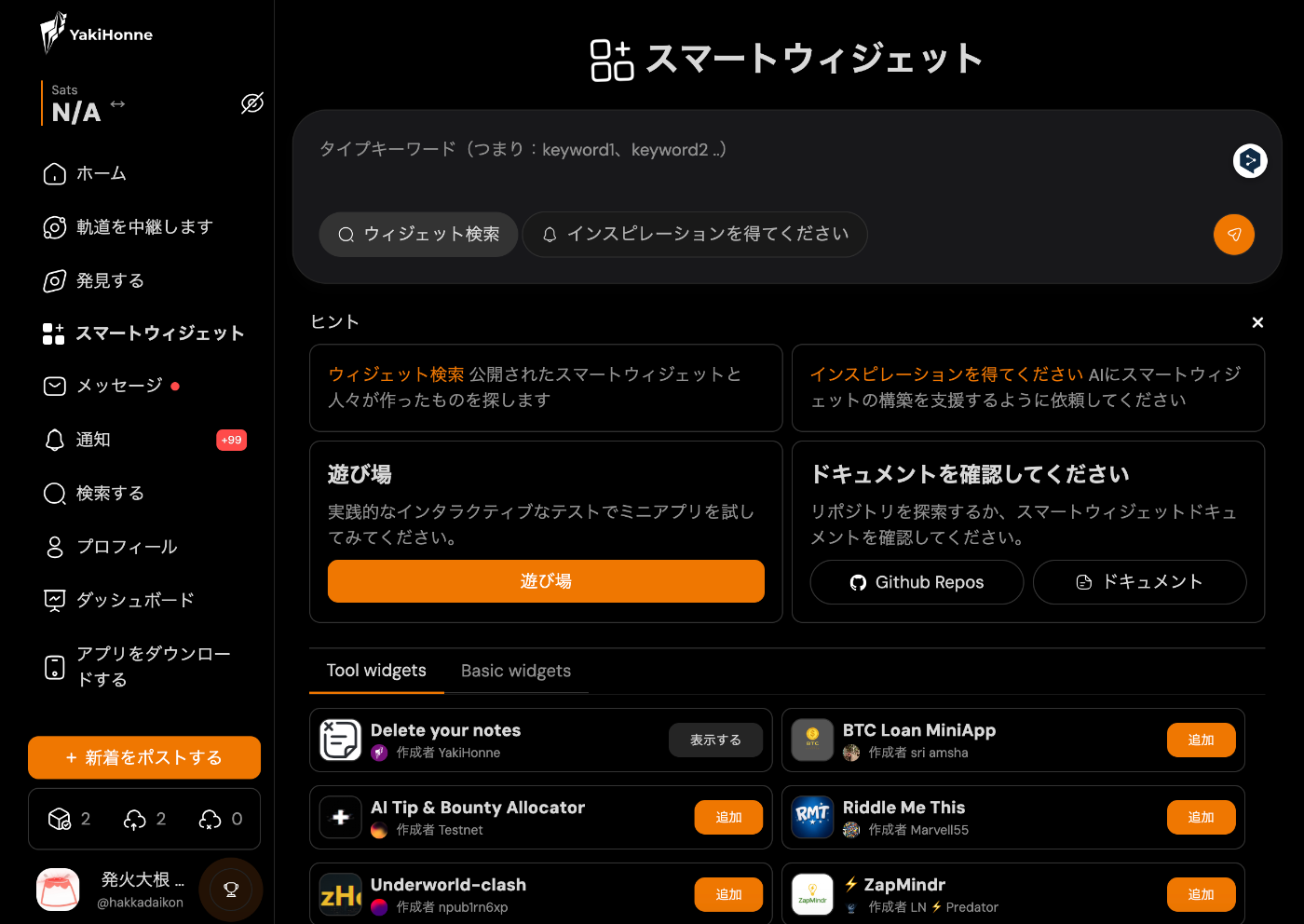 また、Yakihonne内でウィジェットを作れる「スマートウィジェット」機能があり、自分で作ったウィジェットを公開できます!