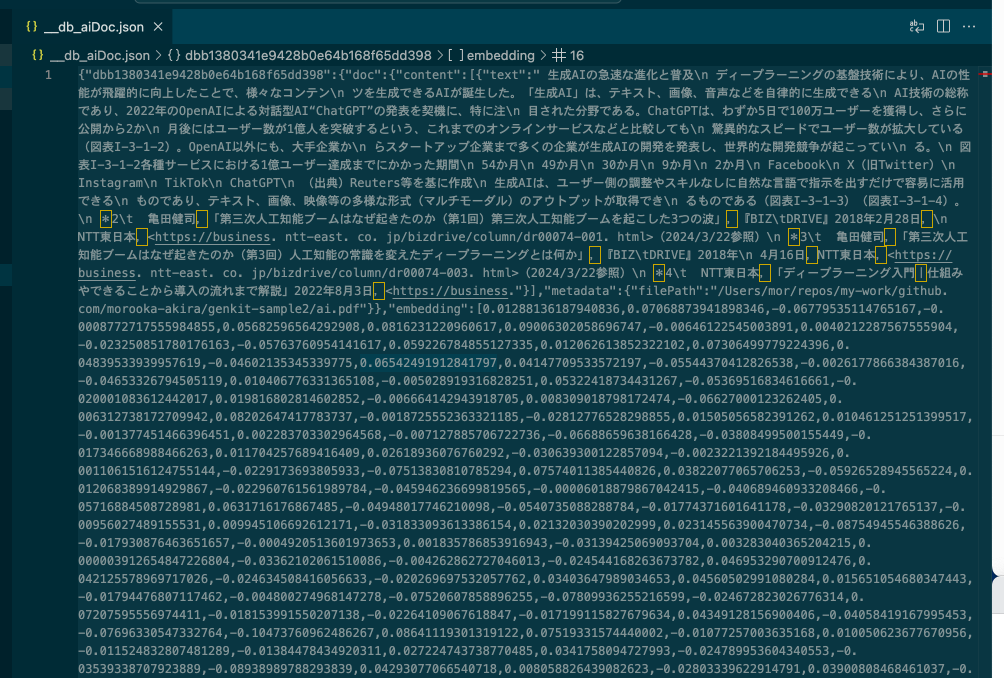 devLocalIndexerRefのインデクサーを使用すると、ローカルディレクトリに _db<name>.json というベクターデータファイルが作成されます。