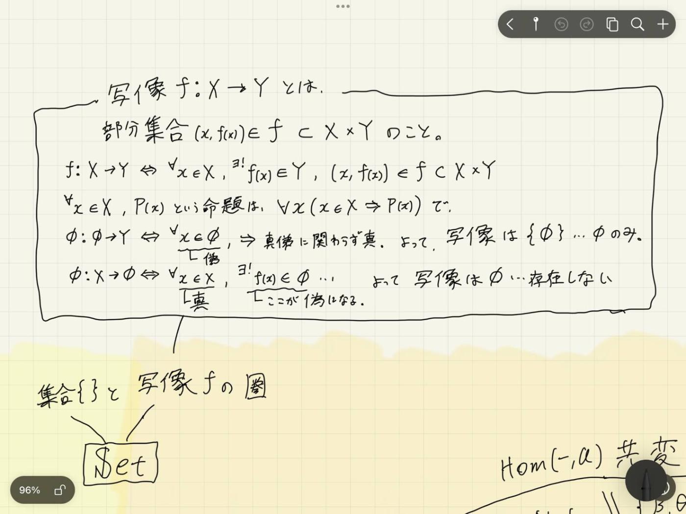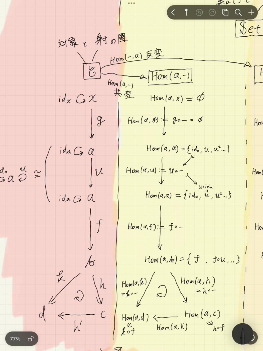 1~3では,状況設定や,「勝手に射の集合を作る関手を用意したが,それほんとに関手になっているか?」から確認していきます.共変関手と反変関手両方あるのがめんどくさいところ.