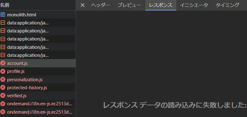 が、失敗! monolithを通すをなにも表示されません。Devtoolで見てみると、jsが読み込みきれてないみたいでした。