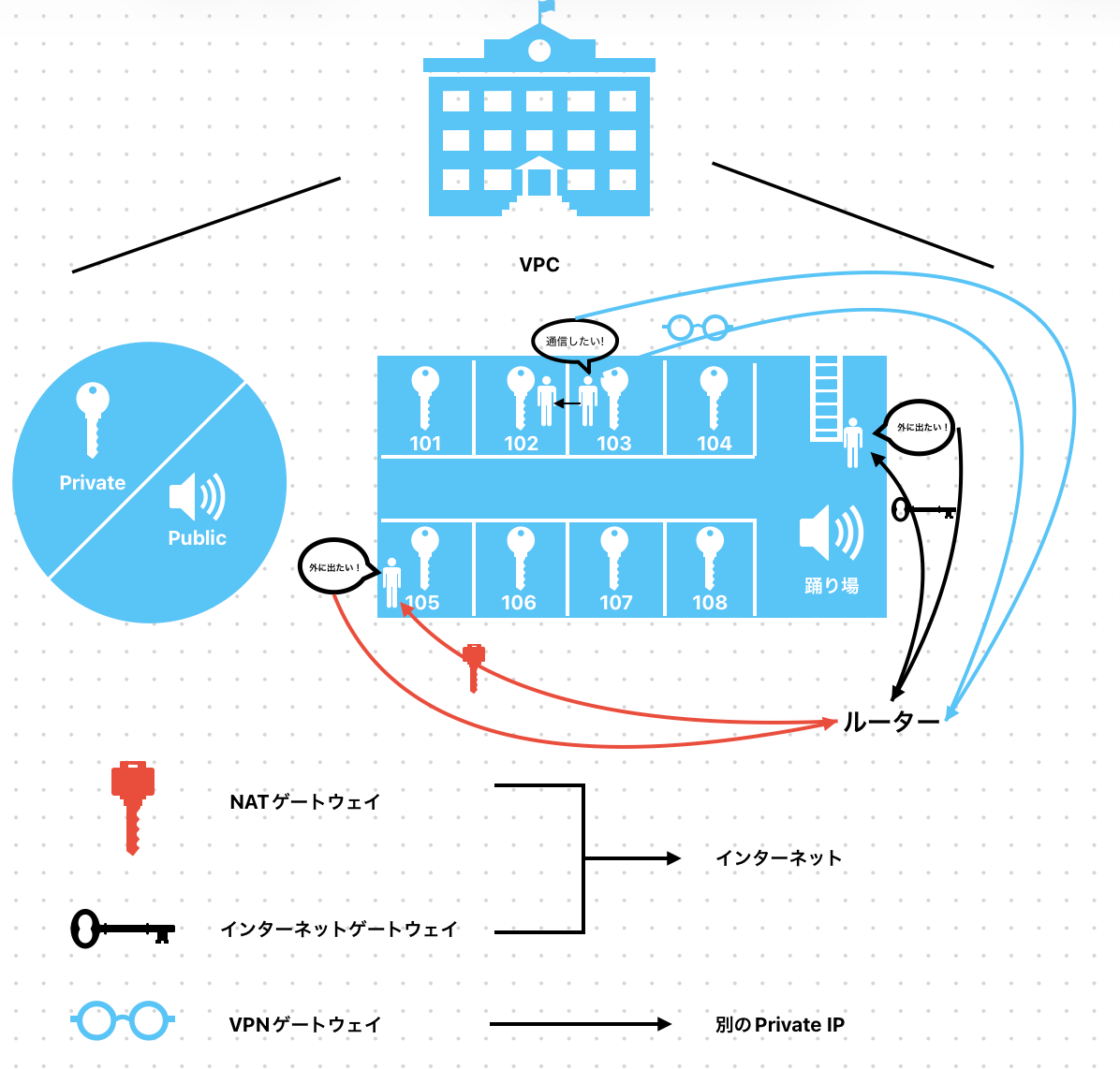 インターン先でAWS勉強会に参加した。専門用語を専門用語で解説するようなわかりづらい領域だったので、例えを用いて解説を残しておくことにした。あくまで説明はイメージの話なので若干の相違はあるかも。