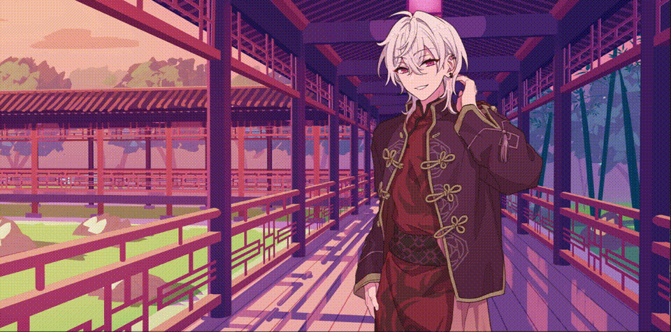 実際のゲームでは夕方背景などの場合はキャラが背景に馴染むように、均一に赤系の色を乗せる程度に留めています。