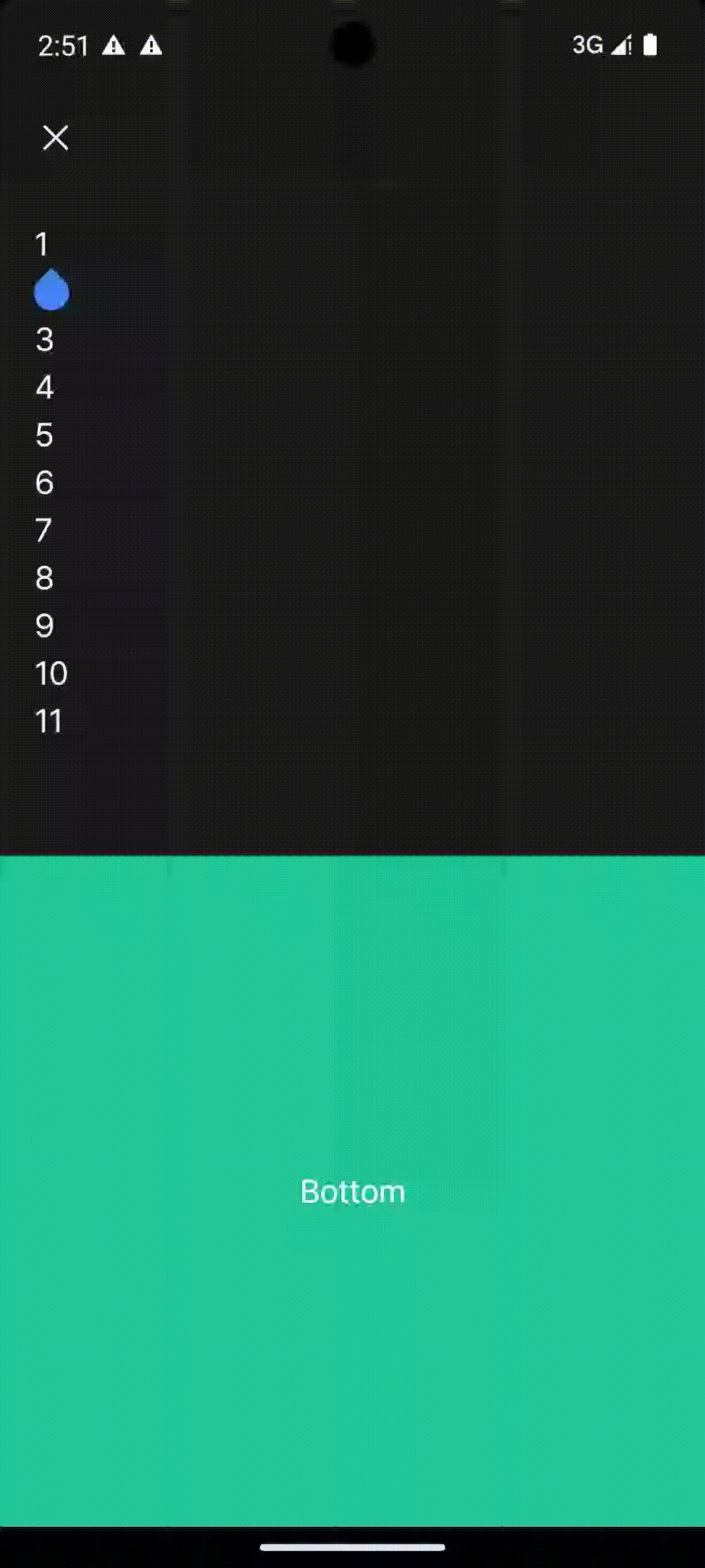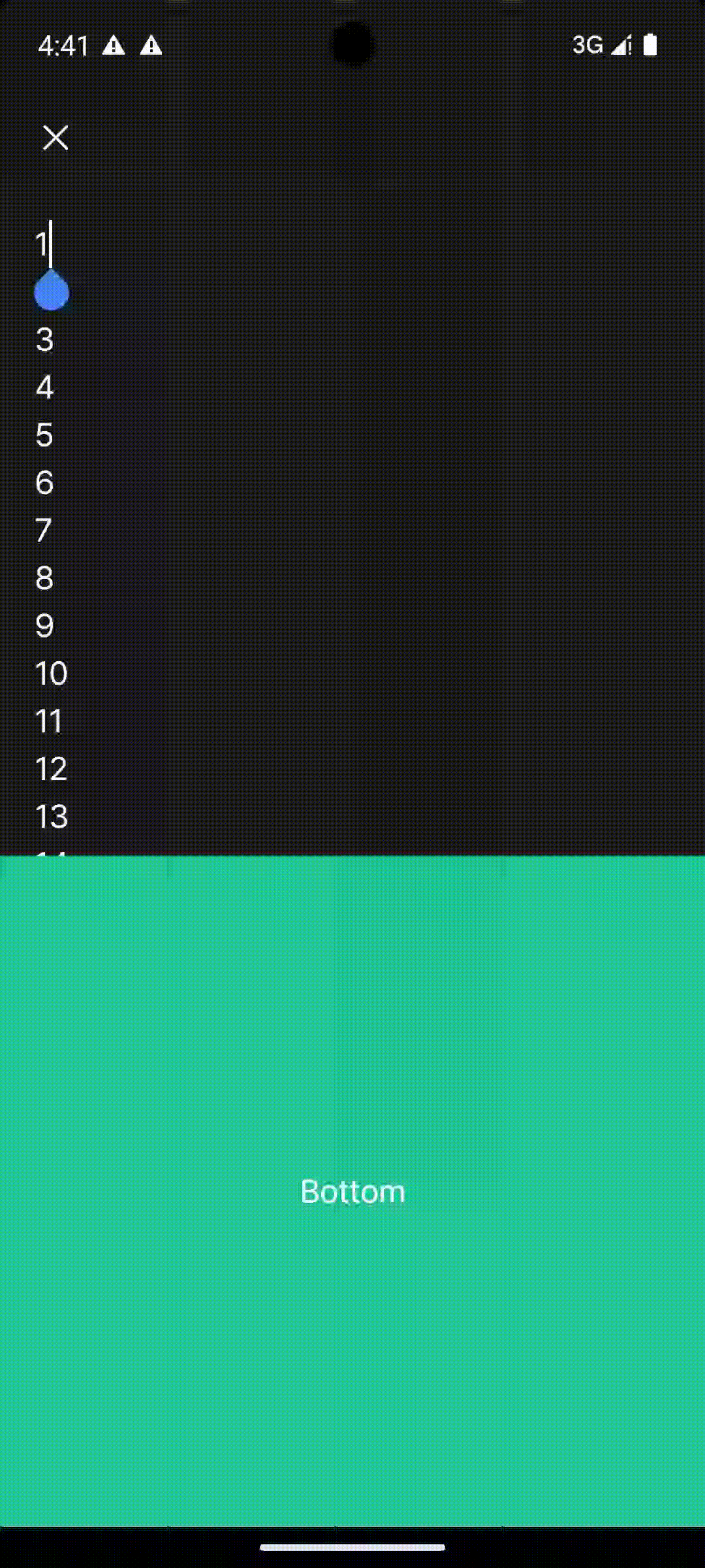 スクロールが必要な状態で任意の行をタップしたときの動作です。
