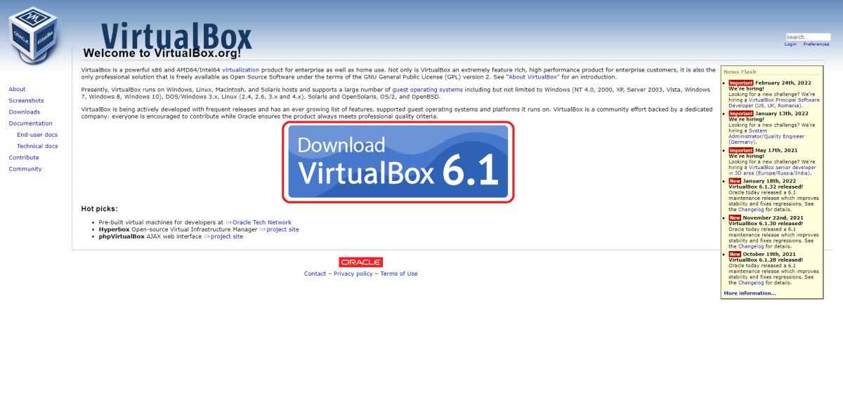 - VirtualBox 公式サイト(https://www.virtualbox.org/)にアクセスします。