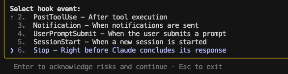 Stop - Right before Claude concludes its responseを選択