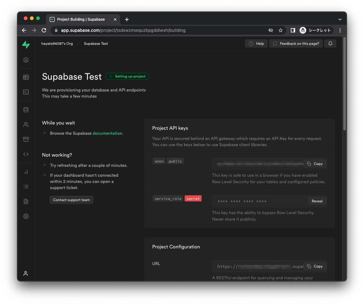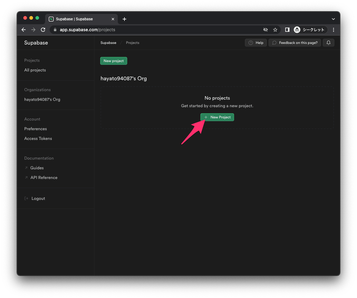 Supabaseでプロジェクトを作成