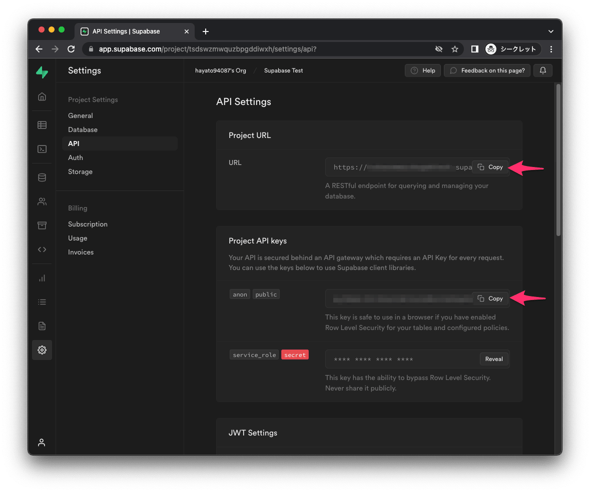 とProject API Key(anon)