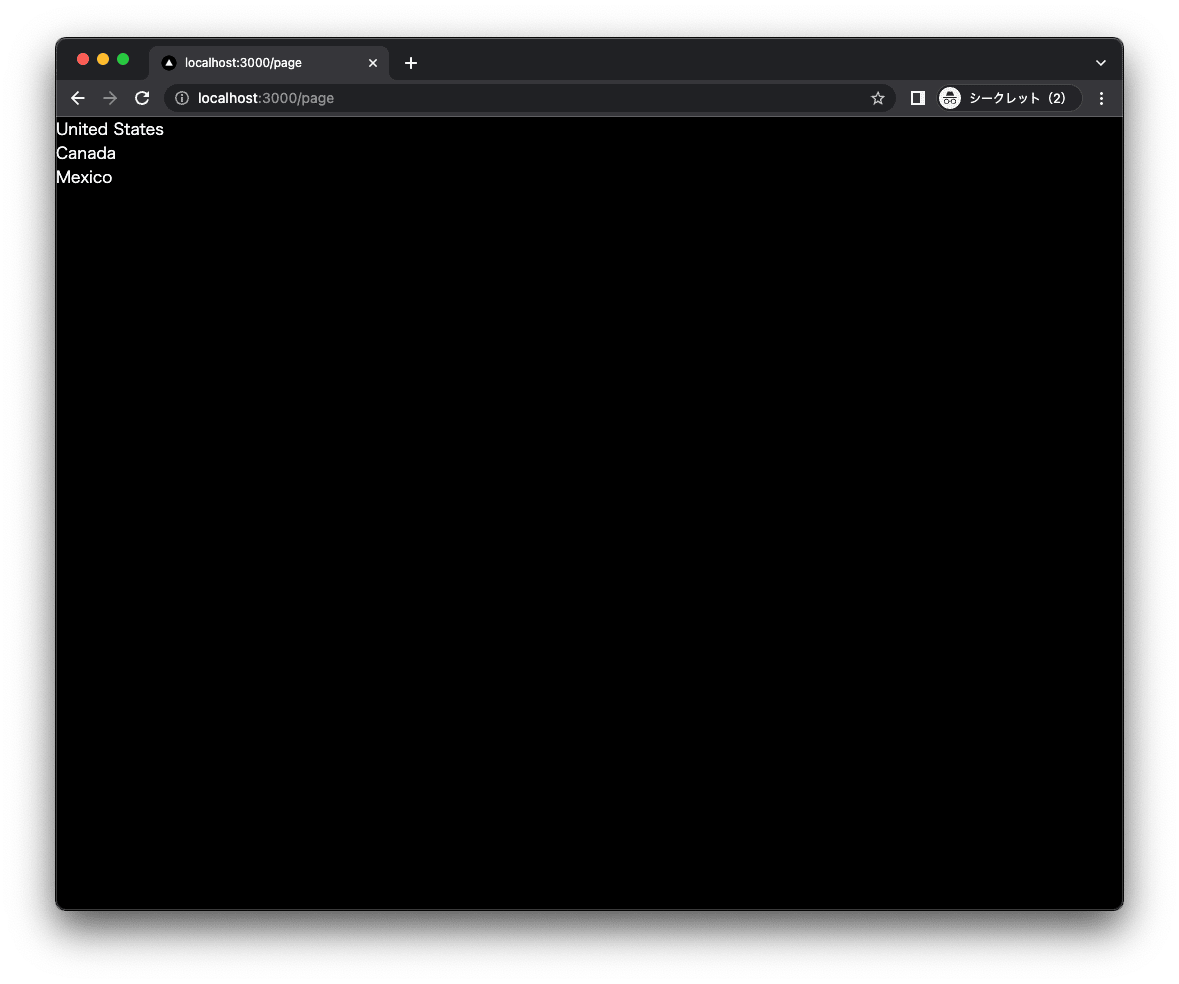 - http://localhost:3000/pageにアクセスします。