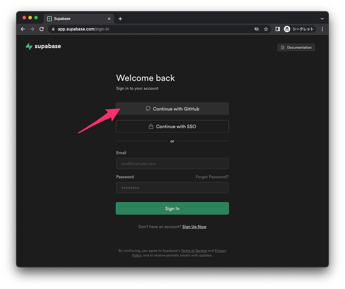Continue with GitHub をクリックします。