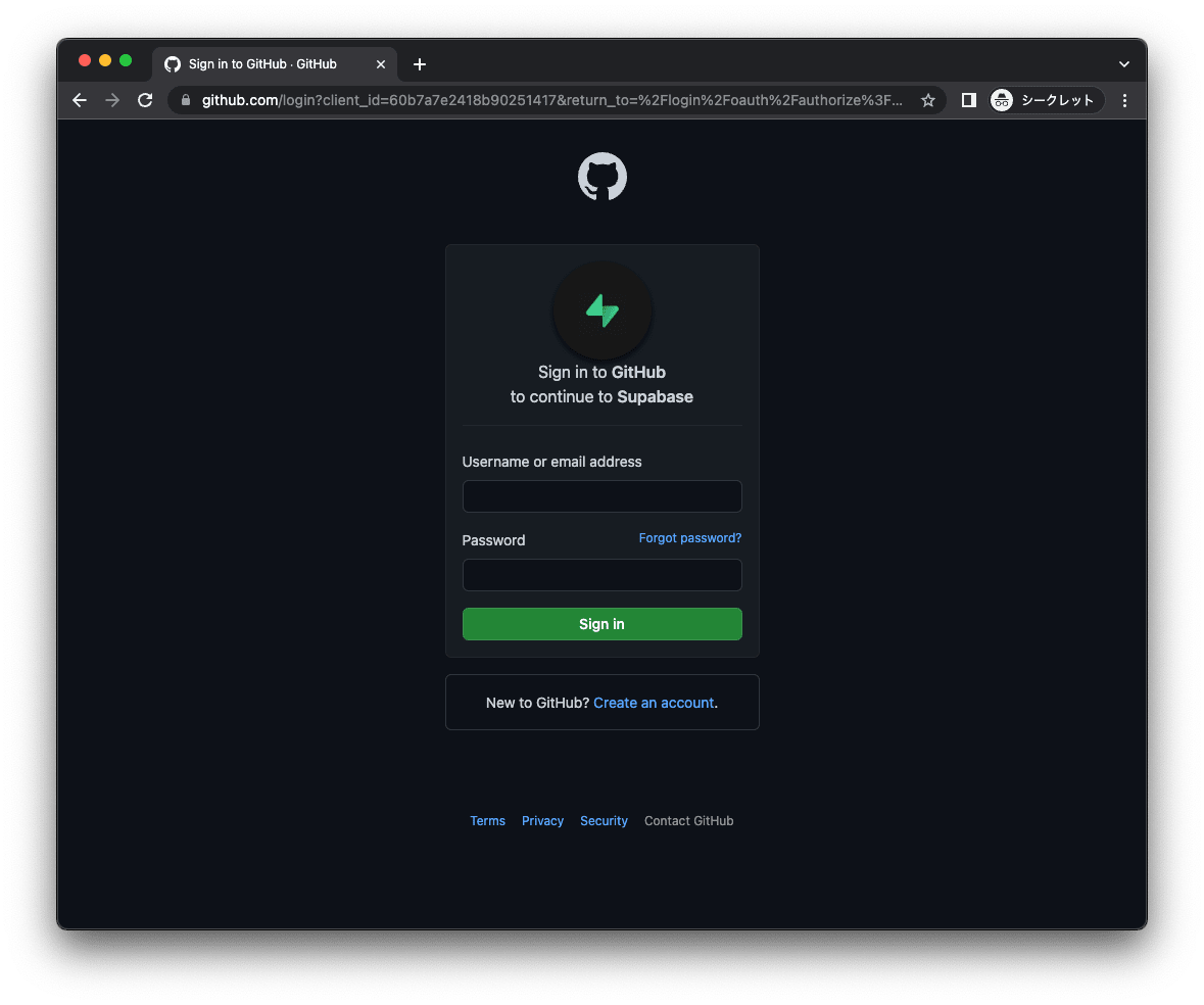 GitHub のアカウントにログインします。