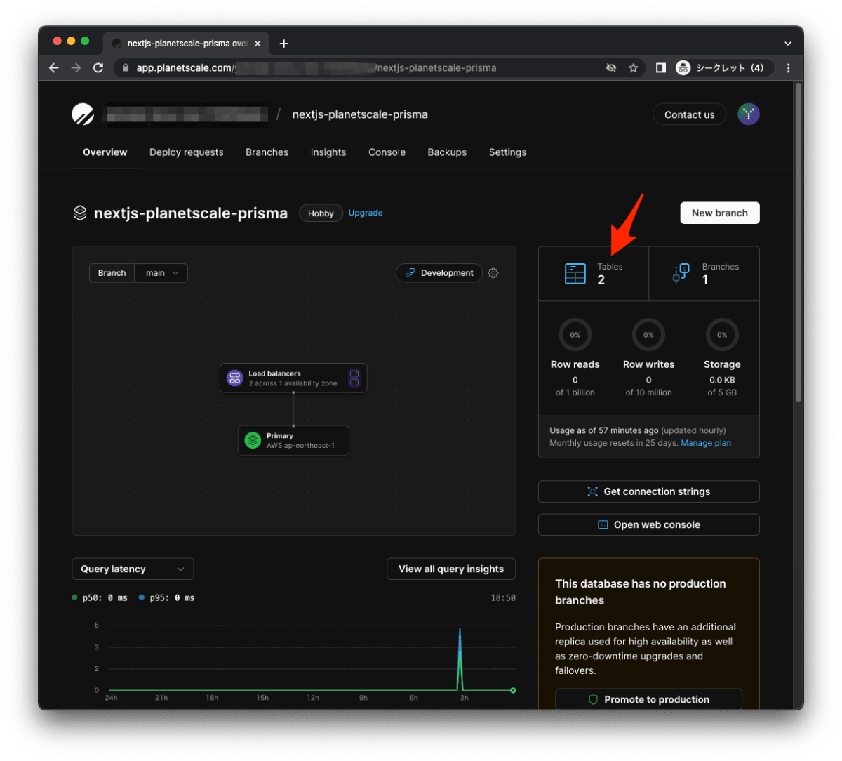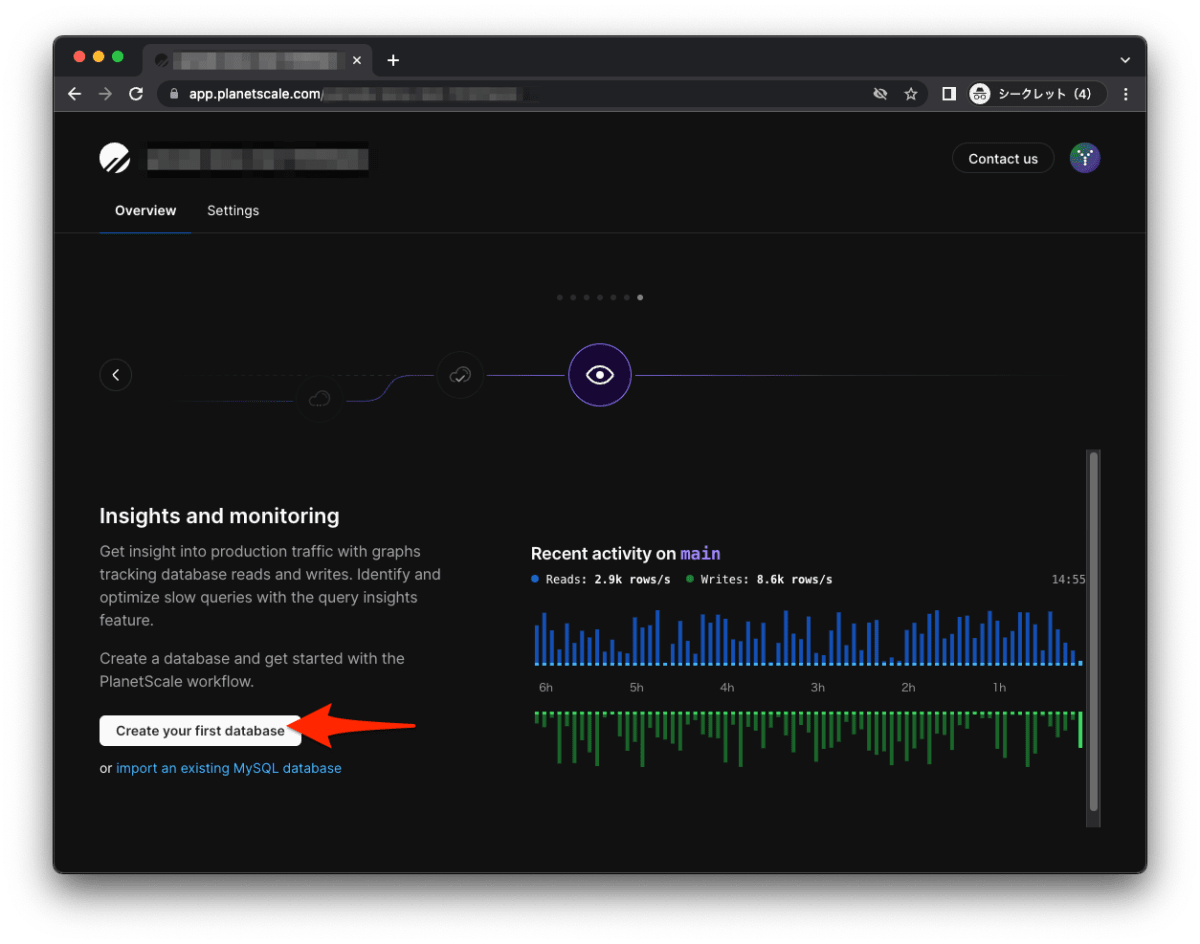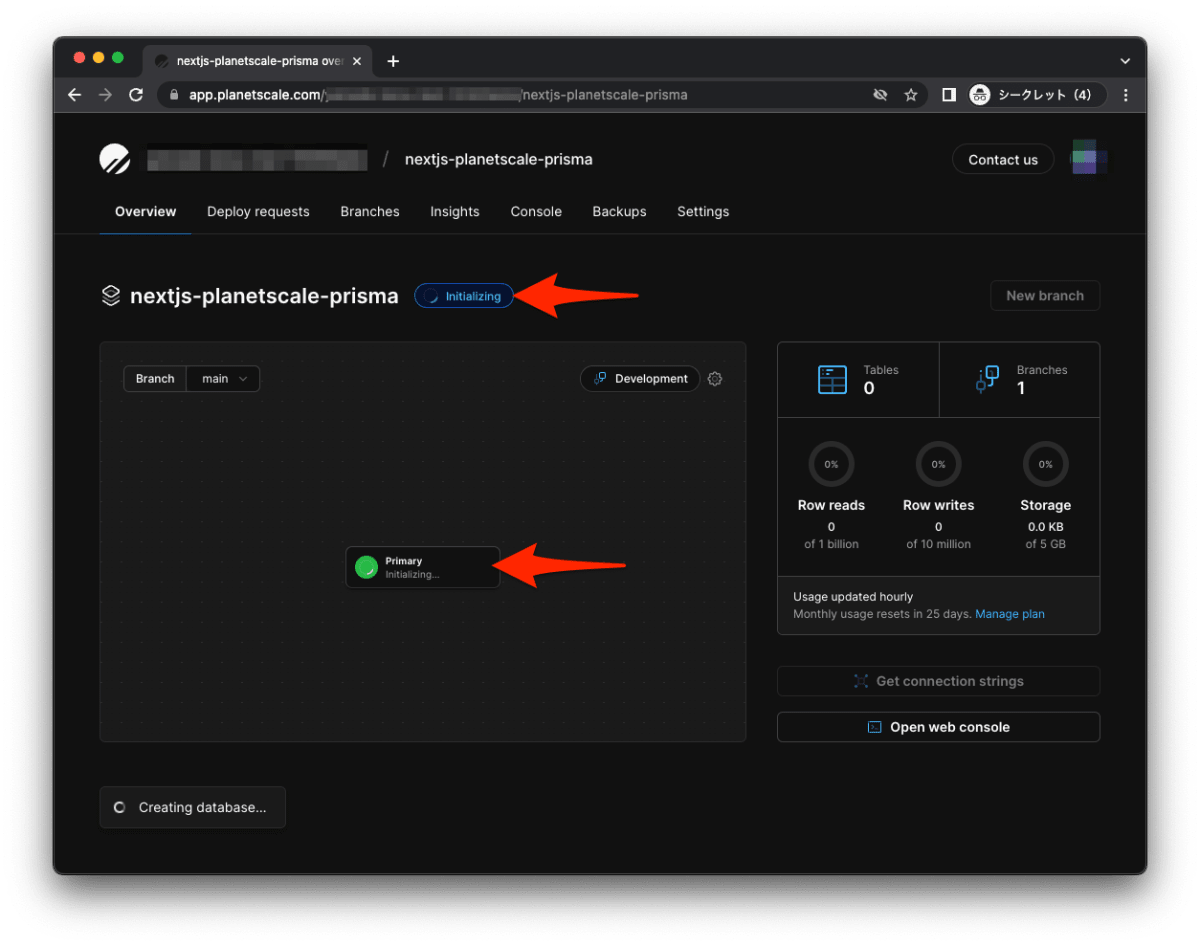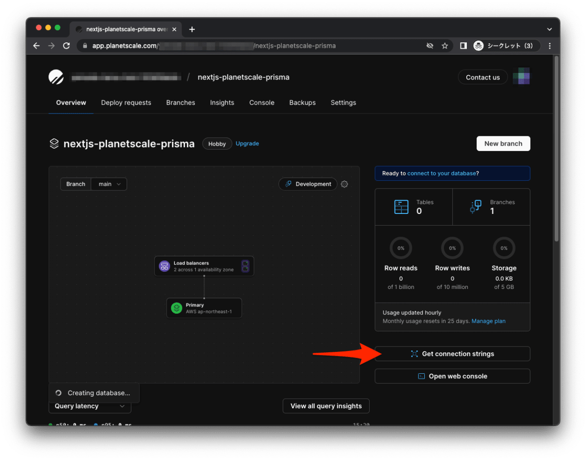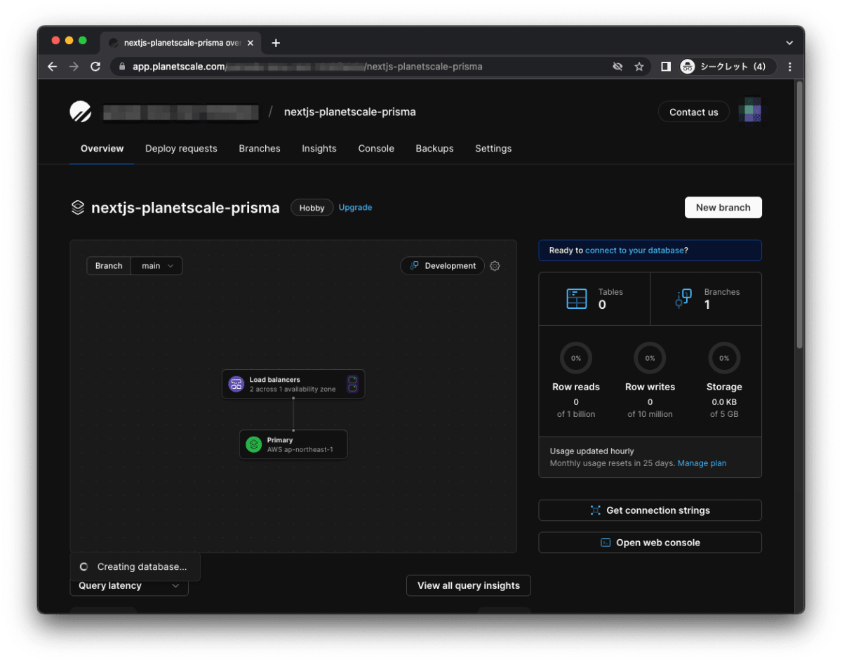 - PlanetScale でアカウントを作成し、実際にデータベースを作成しました。