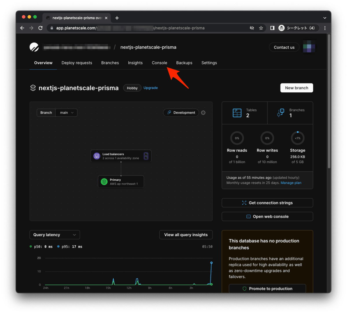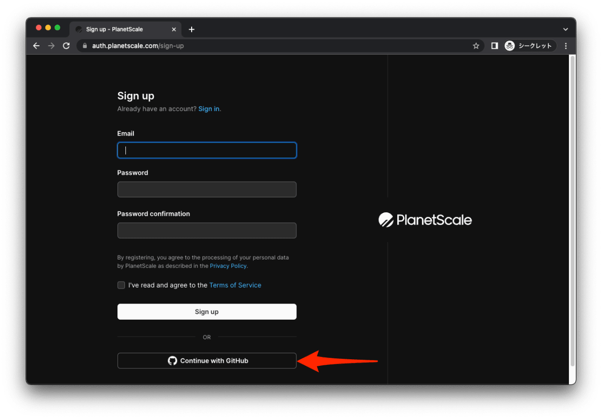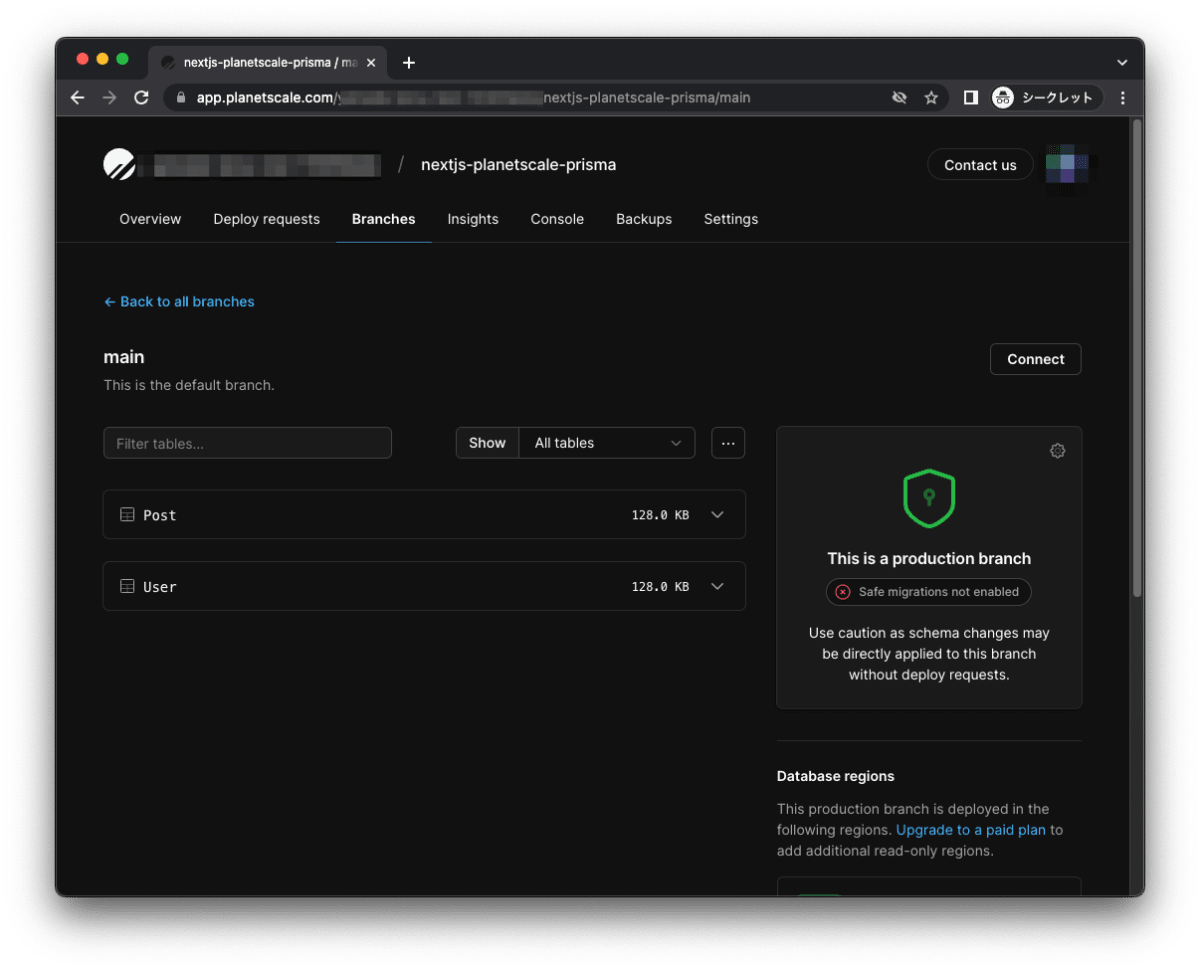 PlanetScaleで商用ブラントを作成する