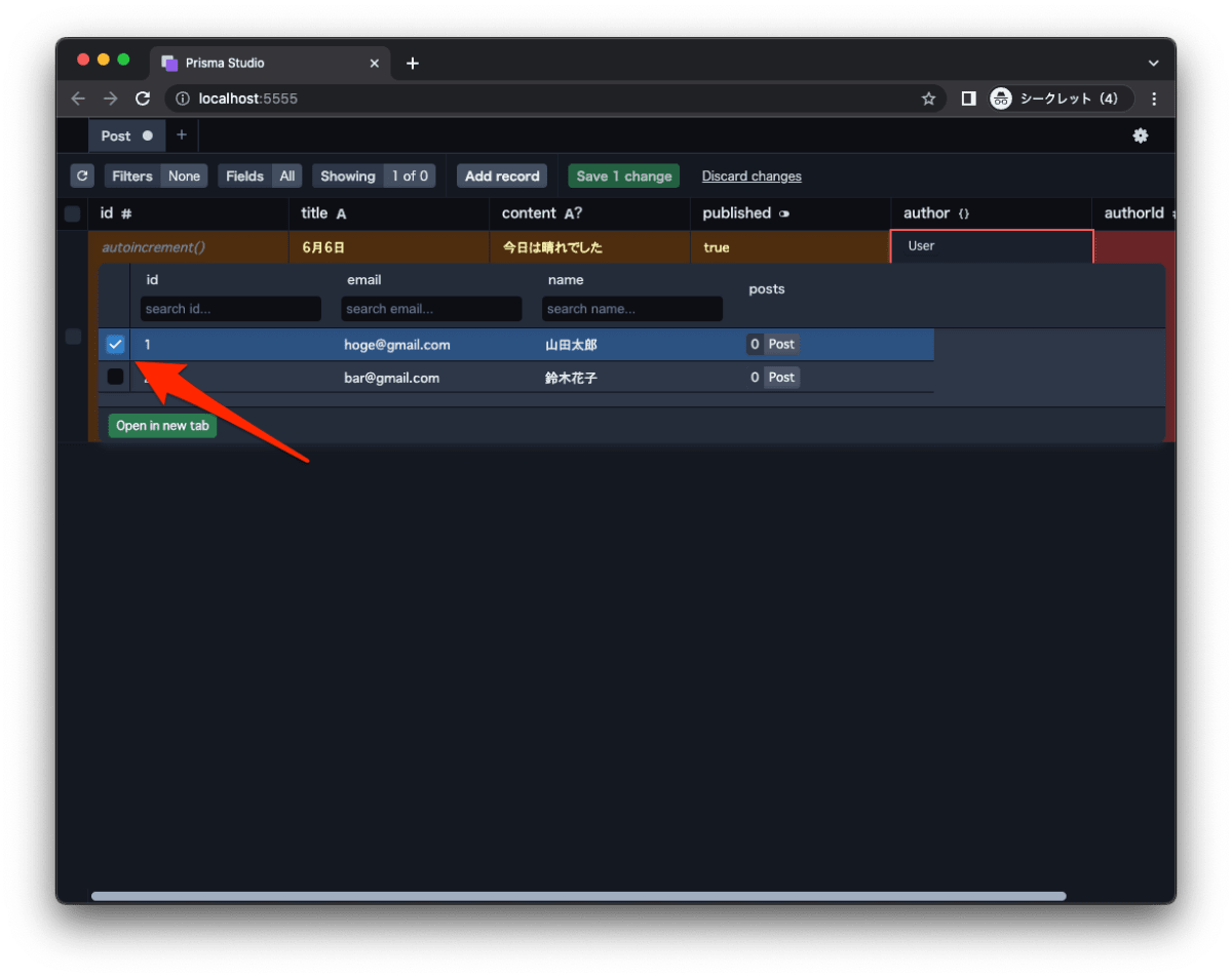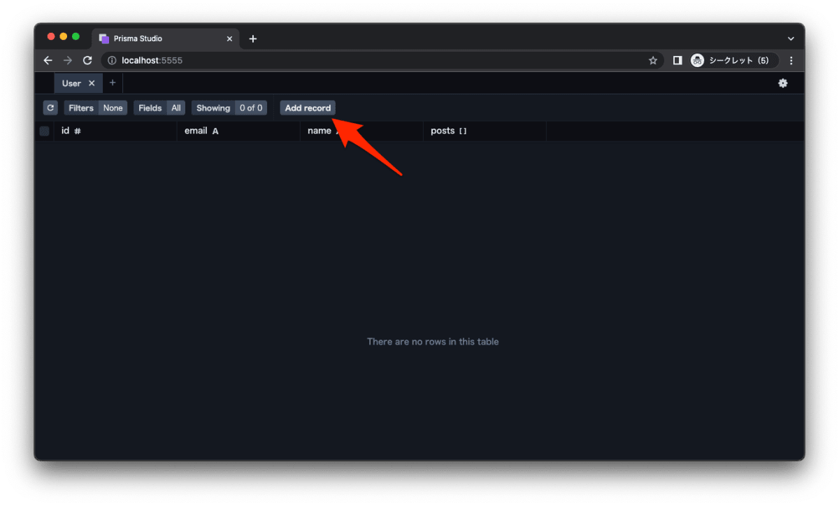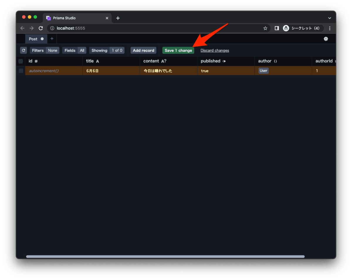 - Prisma を通して、テーブルを作成、データを投入します。