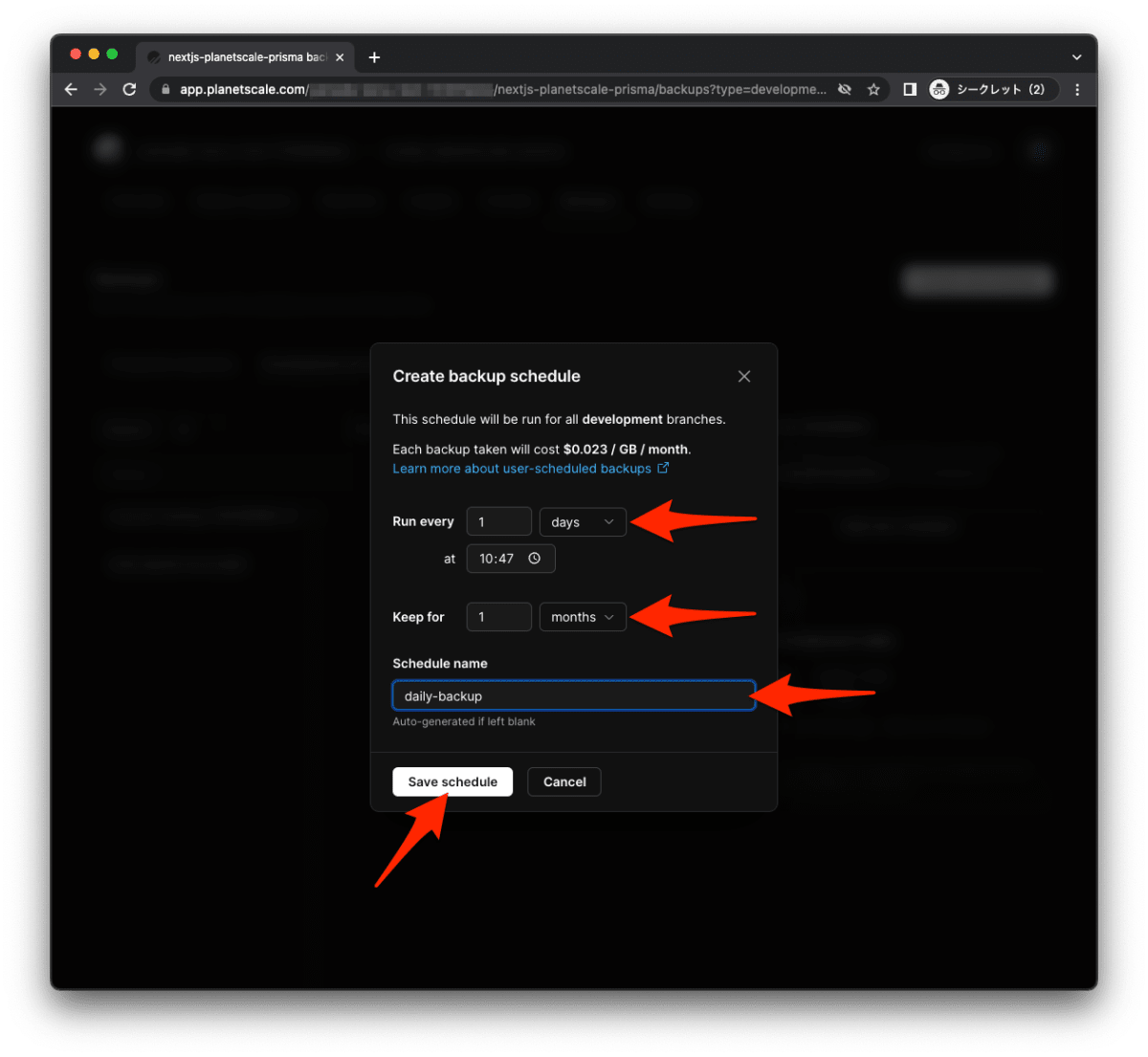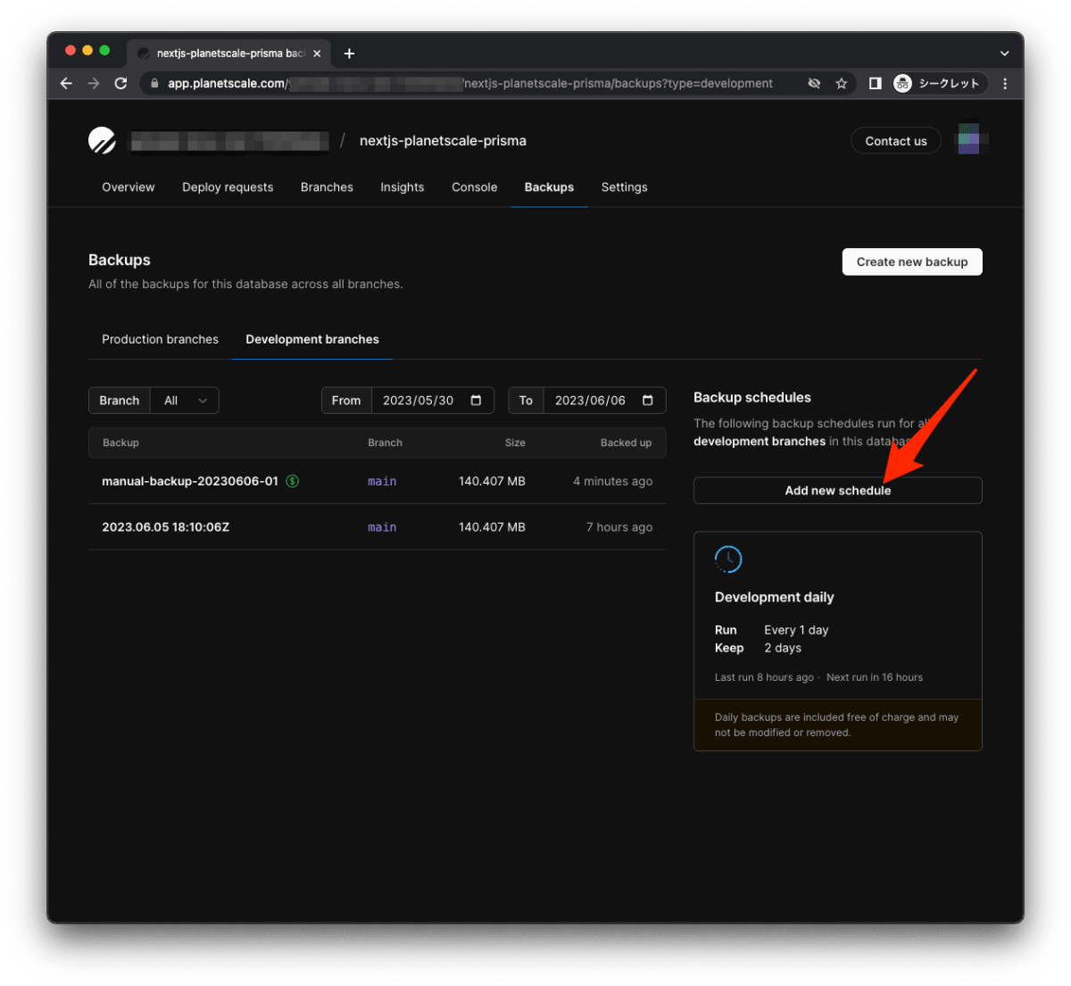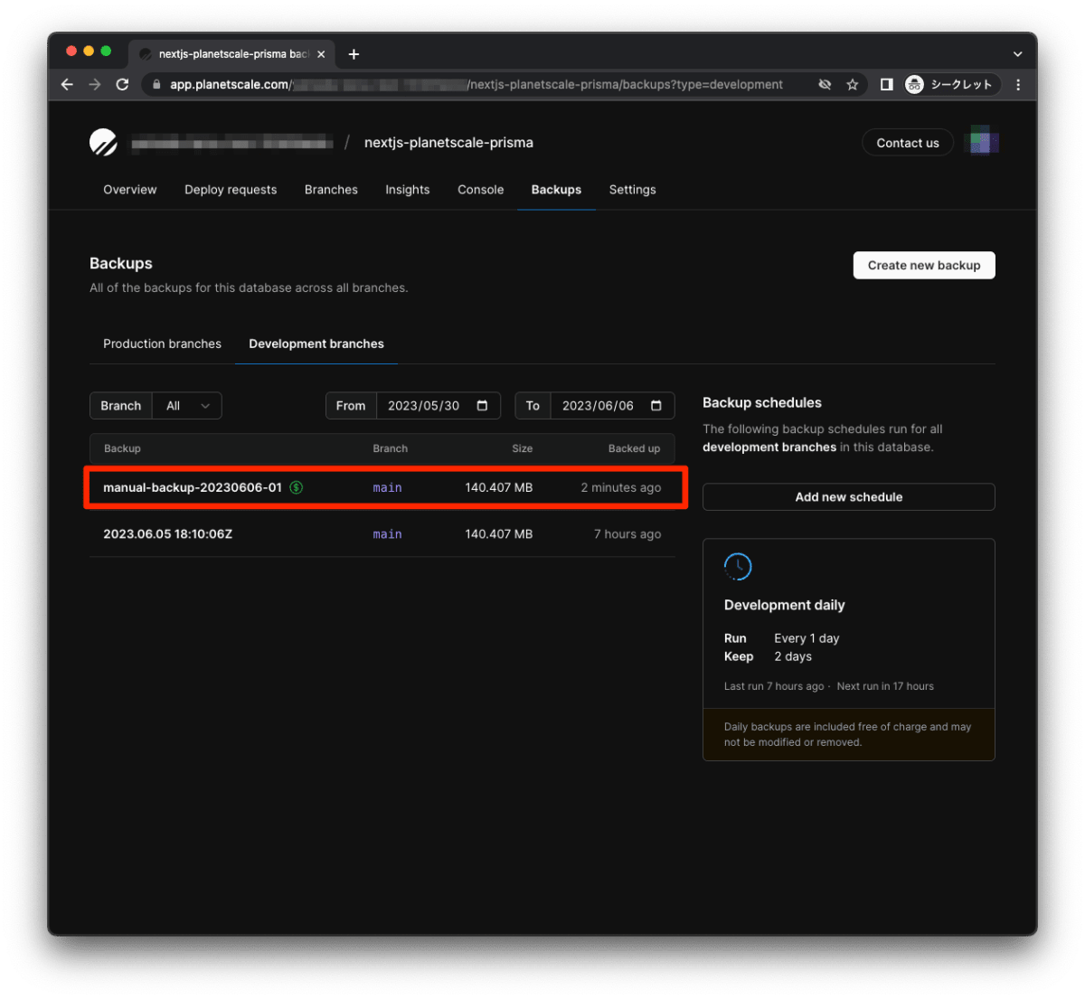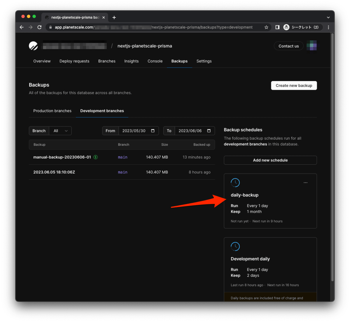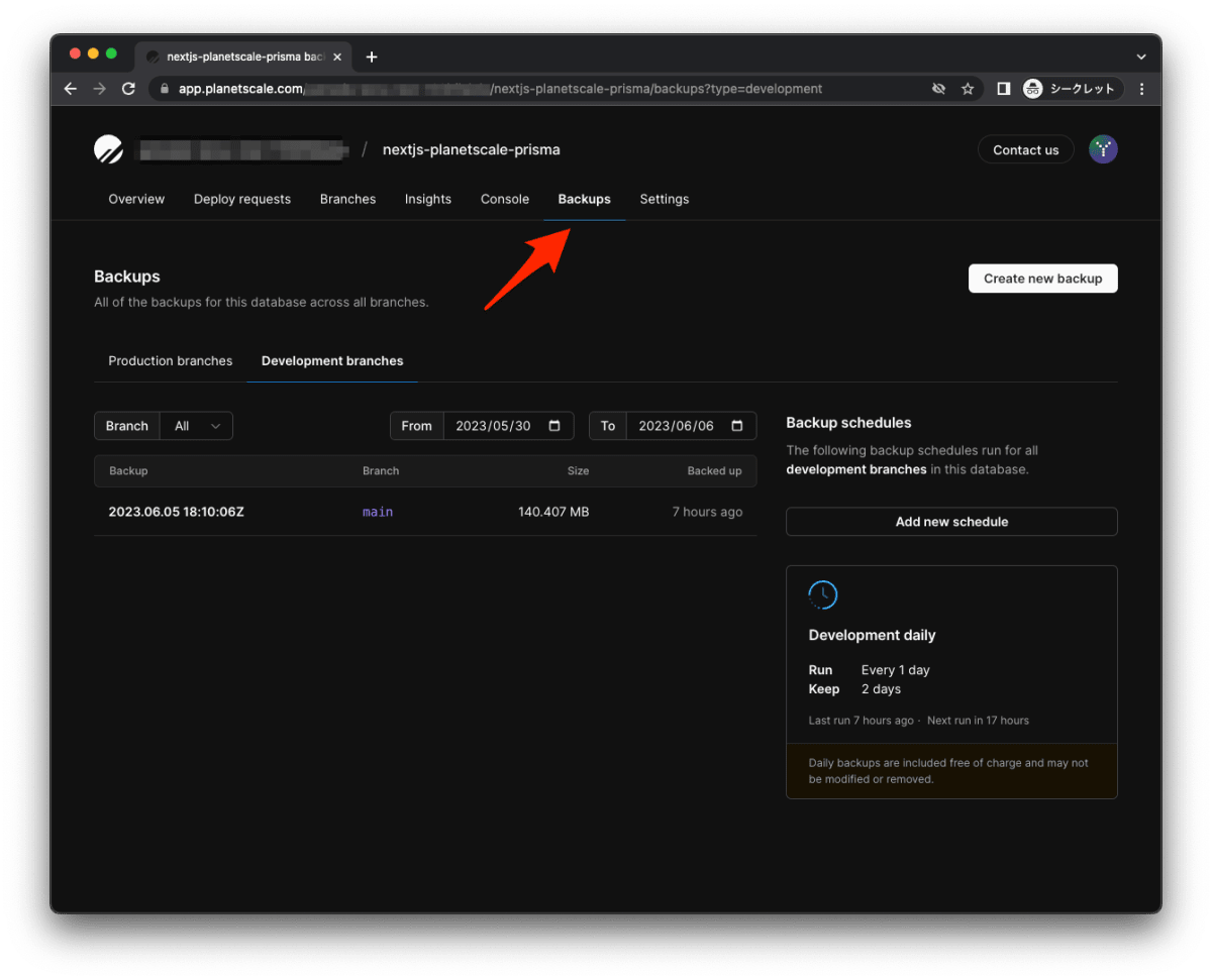 PlanetScale でデータを定期的にバックアップする設定は以上です。