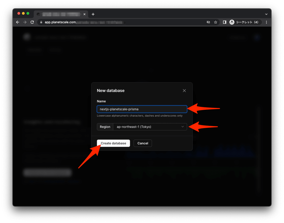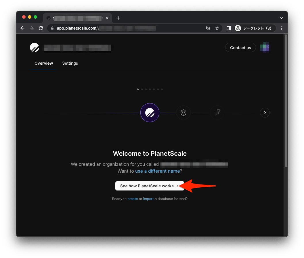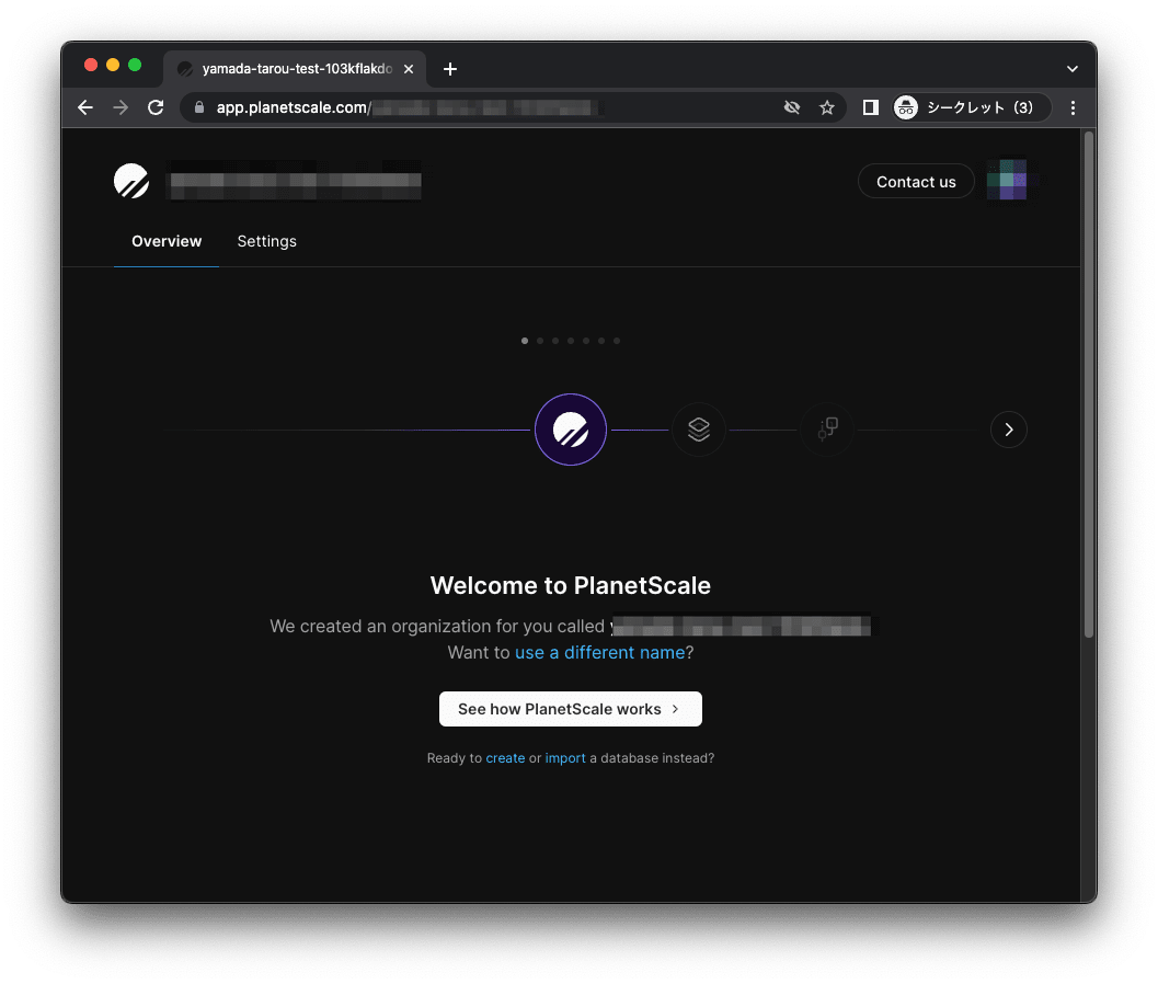 - PlanetScale でアカウントを作成し、実際にデータベースを作成します。