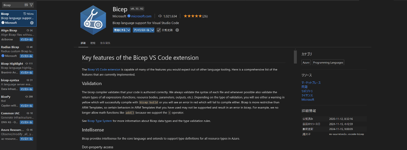 - Bicepの拡張機能をインストールする
