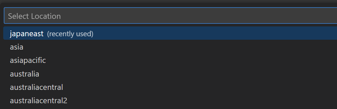 location: 'japaneast' // リソースグループのリージョンを指定