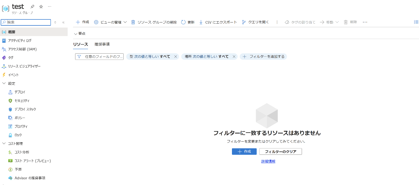 - リソースグループが作成されたことを確認する