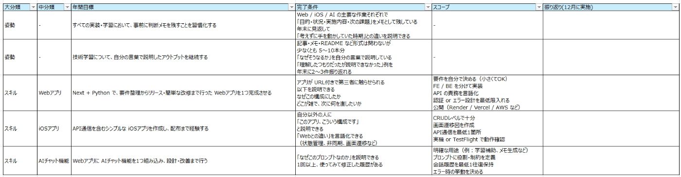 👉 これは「できた / できてない」で振り返れる良い目標です。