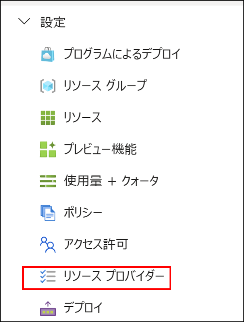 - 「設定」セクションの「リソースプロバイダー」をクリックします。