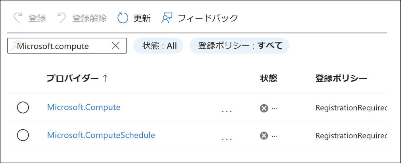 リソースプロバイダーにMicrosoft.Computeを登録する