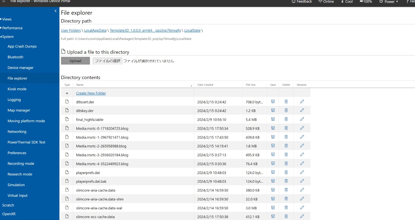 Hololens2上で動かしたい場合は、Hololens2のIPアドレスをブラウザ上で入力してDevice Portalを起動してください。