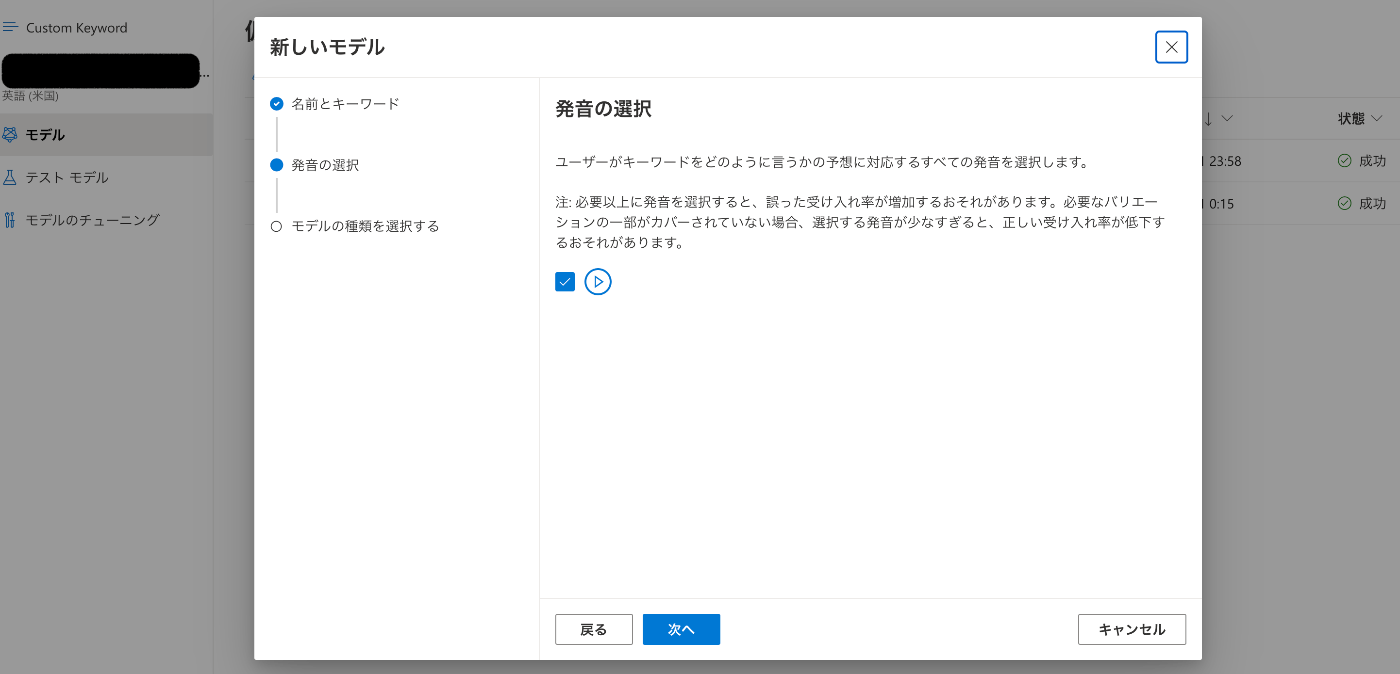 横に「4」がついているリージョンで「カスタム キーワードの高度なモデルがサポート」がされています。
