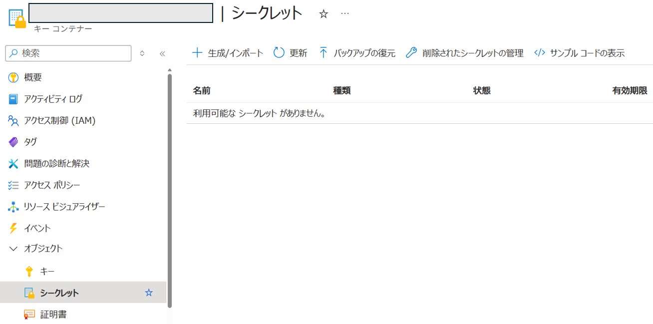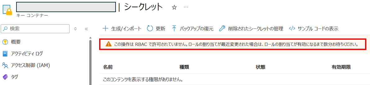 KeyVault(キーコンテナ)のシークレットは、Azureの『所有者』権限を持っていたとしても閲覧、作成することができません。