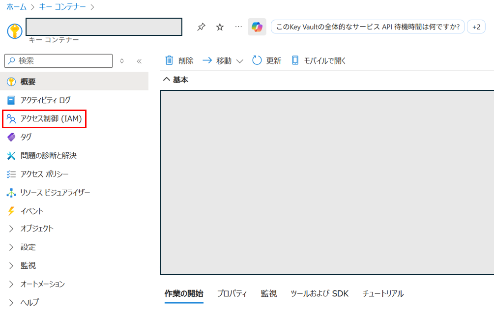 1. 任意のキーコンテナを開き『アクセス制御(IAM)』を押下する