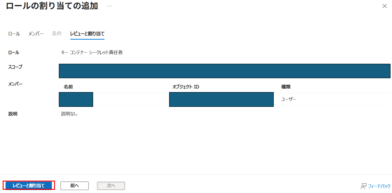 本記事では、KeyVaultでシークレットを作成するための『キーコンテナーシークレット責任者』権限の付与方法を記述します。