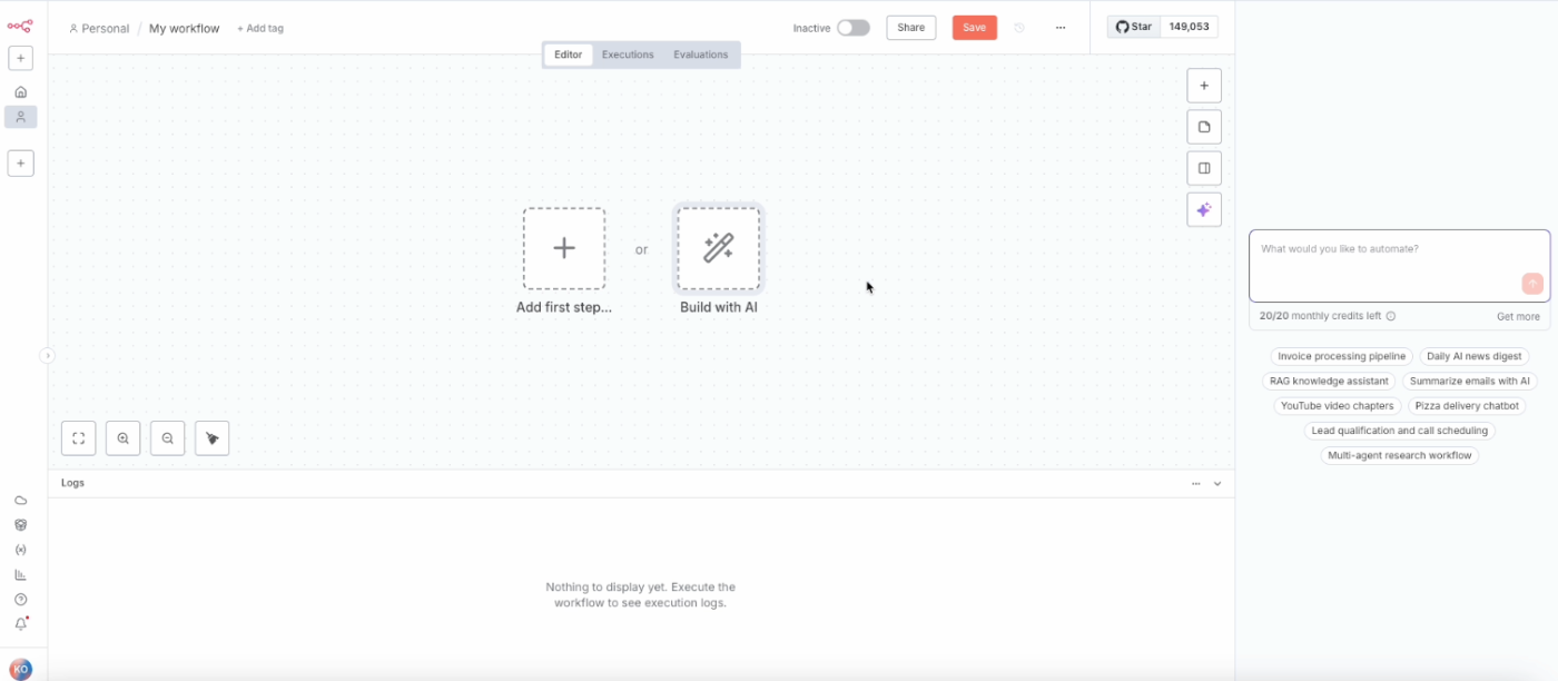 n8nのAI Workflow Builderを触ってみる