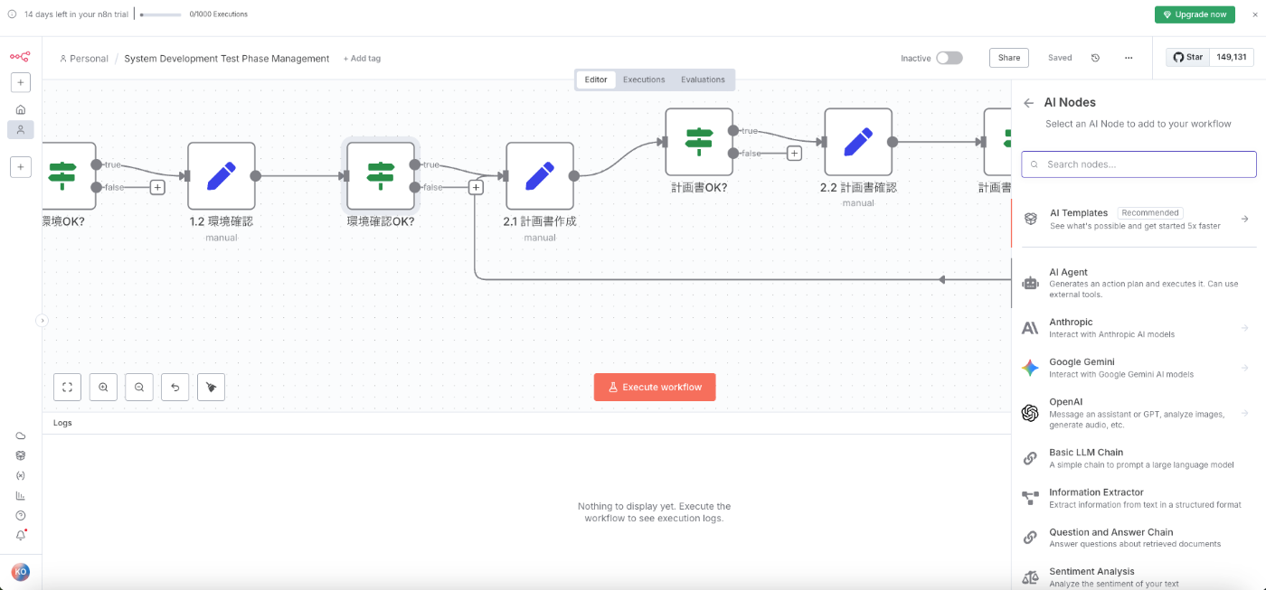 ざっと、n8nのAI Workflow Builderを触ってみました。