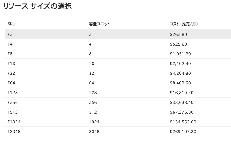ちなみに、Fabricの料金体系は下記と表示されました。