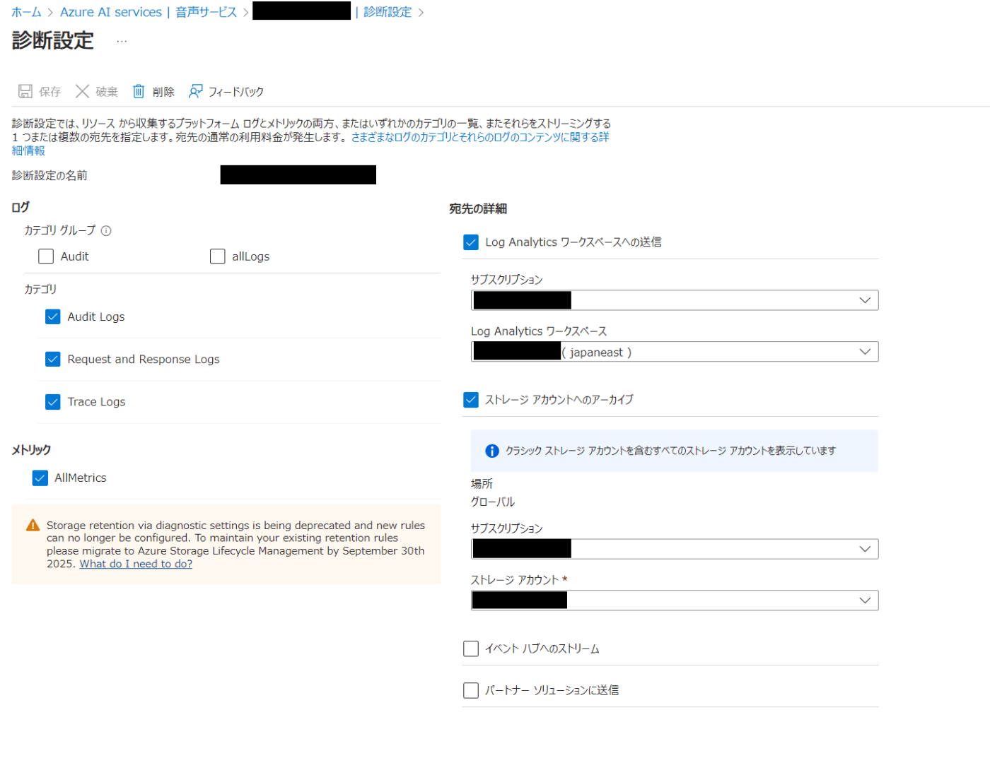 - 診断設定を有効化済み、かつLog Analyticsワークスペースへ送信済みであること。
