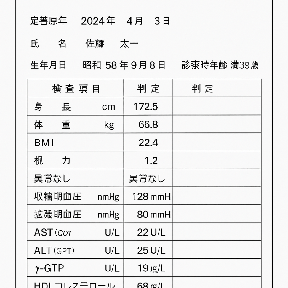健康診断書のダミーデータをGPTで作成して読み取ってみます。