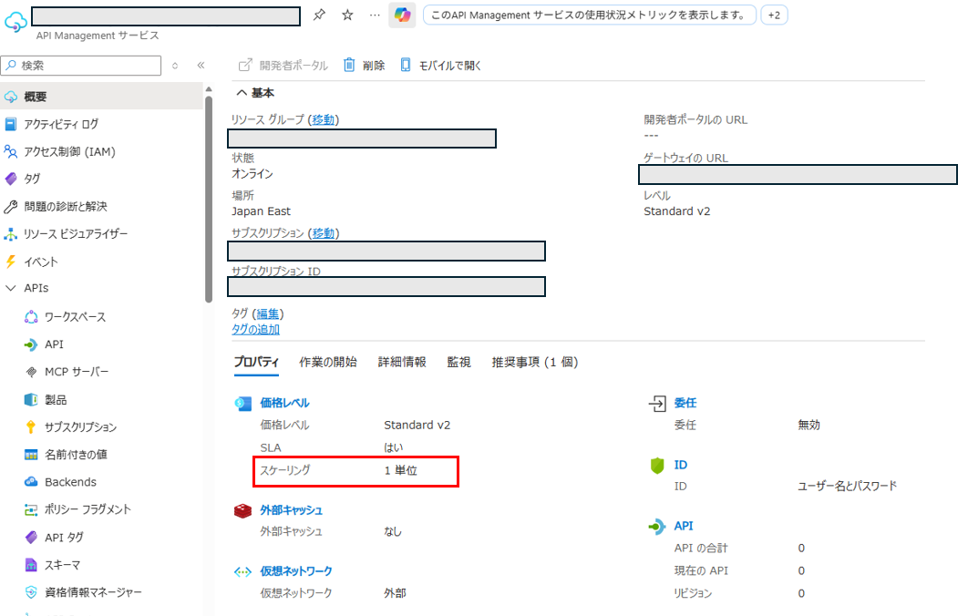 ヘッドウォータースPublication Pro🦐【Azure】API Managementのユニット数についてSon2026/02/01に公開AzureAPI Managementヘッドウォータースapimユニットtech 記事の内容 Azure API Management構築時に設定する、ユニット数を構築後に確認する方法について記載。 確認方法 APIM≫概要≫プロパティ≫スケーリングを確認 ユニット数=スケーリングとなる。 ヘッドウォータースPublication Pro株式会社ヘッドウォータースのテックブログです。 AIエージェント、生成AI、LLM、Azureのサービスや資格、IoT、XR系などData&AIとApp modernizeに関して幅広く投稿します!Discussion