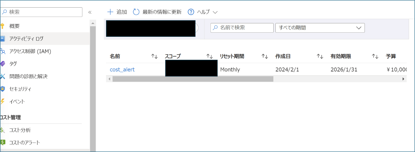 ヘッドウォータースPublication Pro🎉Azureのコストアラートの設定を行うtakekawa tomoki2024/02/07に公開Azuresubscriptioncosttech やること Azureサブスクリプションの「予算アラート」を設定する 手順 1.該当のテナントに移動する 2.上記の検索欄にて「サブスクリプション」と検索を行い、「サブスクリプション」をクリック 3.該当のサブスクリプションをクイック 4.「予算」をクリック 5.「+追加」をクイック 下記のようなパラメータを入力し、「次へ」をクリック 閾値とアラートの受信者を設定し、「作成」をクリック 作成されたことを確認 ヘッドウォータースPublication Pro株式会社ヘッドウォータースのテックブログです。 AIエージェント、生成AI、LLM、Azureのサービスや資格、IoT、XR系などData&AIとApp modernizeに関して幅広く投稿します!Discussion