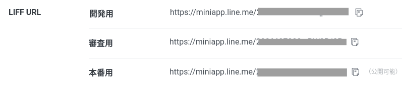 この URL の最後のところの文字列(グレーで隠している部分)が「LIFF ID」です。