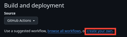 選択すると表示が変化するので、「create your own」をクリックし、CI/CD の設定を作っていきます。