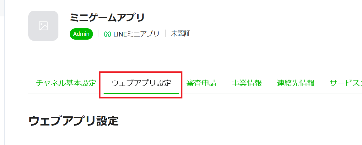 チャネルができたら、「ウェブアプリ設定」のタブを開きます。