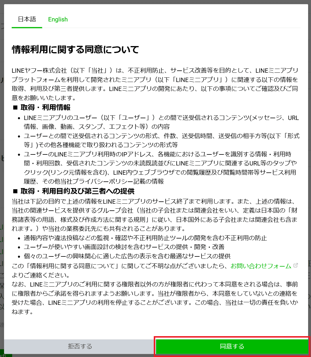「情報利用に関する同意について」も確認して「同意する」をクリックします。