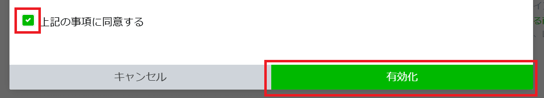 「情報利用に関する同意について」を確認・同意して「有効化」をクリックします。
